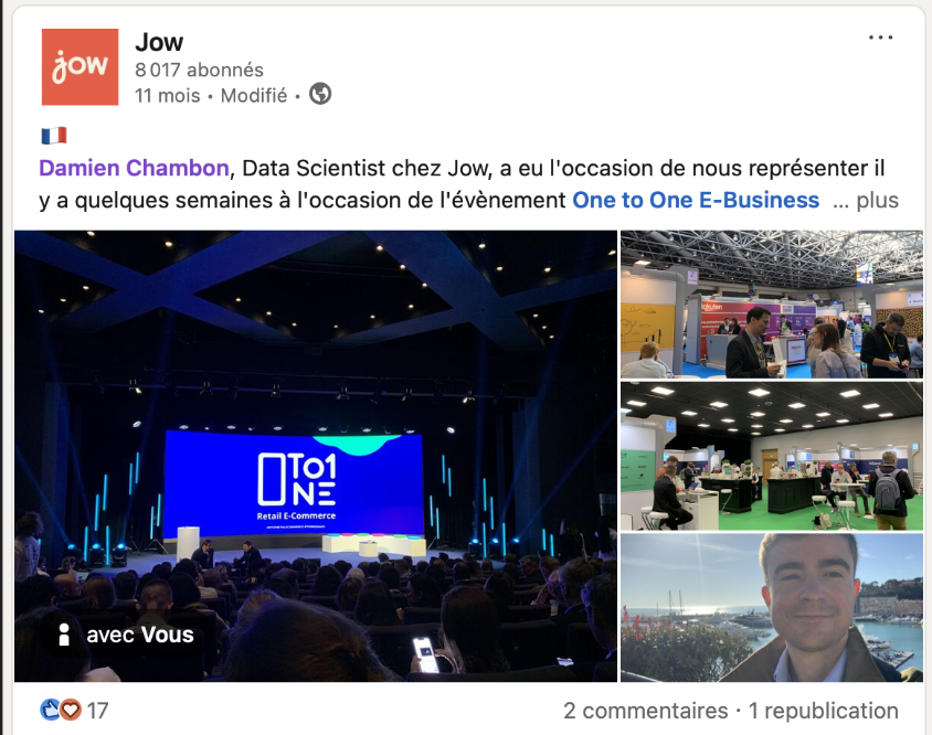 Un de mes moments préférés : les présentations du jeudi où les équipes se réunissaient pour partager leurs derniers projets. J'adorais ces moments où je pouvais démystifier la technologie, expliquer les rouages de nos algorithmes aux équipes métiers. Mon ambition a toujours été que les gens s'approprient ce qui a été fait. La Tech ne doit pas être une boîte noire incompréhensible. J'ai aussi eu la chance de représenter Jow au salon One to One Retail E-commerce 2023 à Monaco. En voyant les conférenciers sur scène, je me suis dit "un jour, ce sera moi".